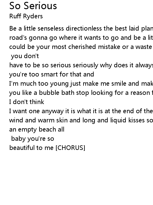 Be a little senseless directionless the best laid plans are usually a joke the road's gonna go where it wants to go and be a little fearless and careless this could be your most cherished mistake or a waste of time that's the chance you take who can tell it's a shot in the dark but what the hell [CHORUS] you don't have to be so serious seriously why does it always have to be about lasting love you're too smart for that and |