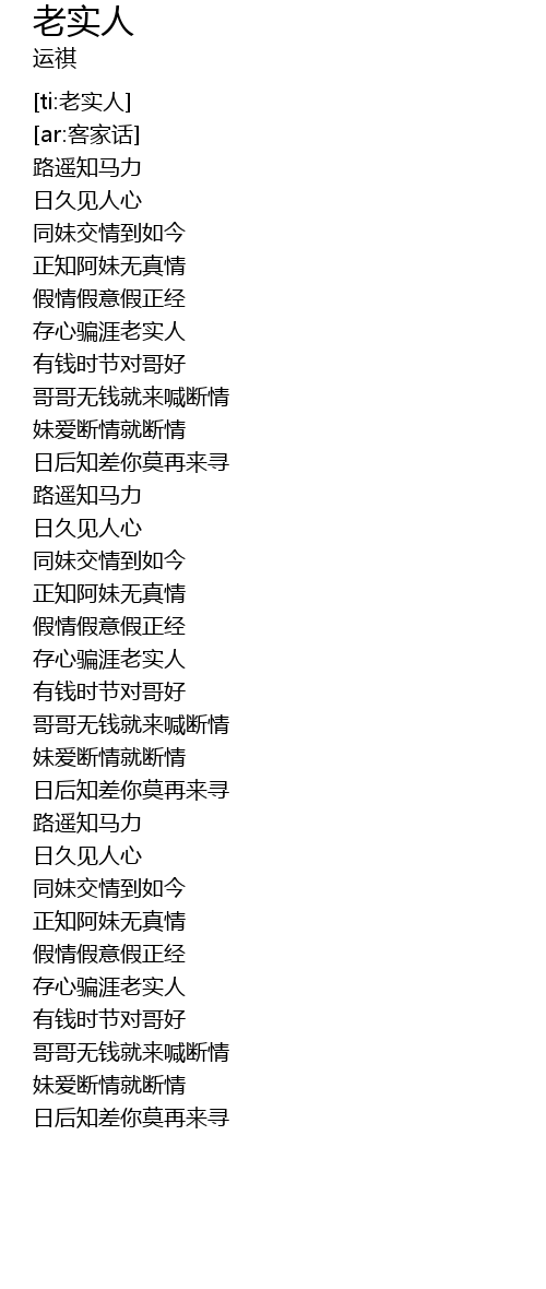 | [00:37.368] | cún xīn piàn yá lǎo shí rén |