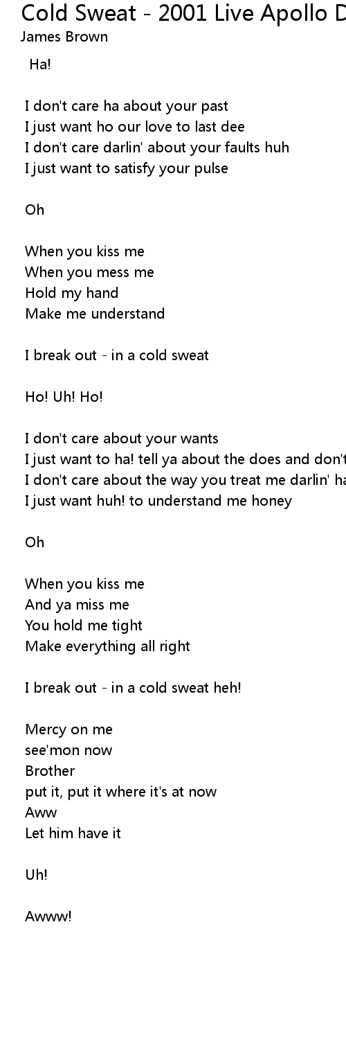 Cold Sweat - 2001 Live Apollo Deluxe Edition Lyrics