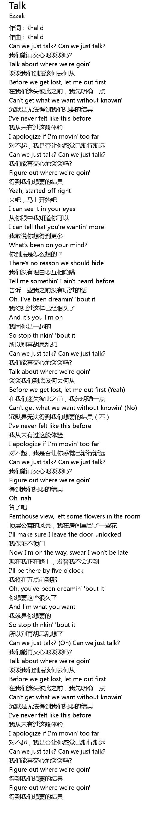 | Album | Khalid - Talk |