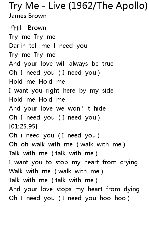 | [02:13.168] | Oh I need you (I need you hoo hoo) |