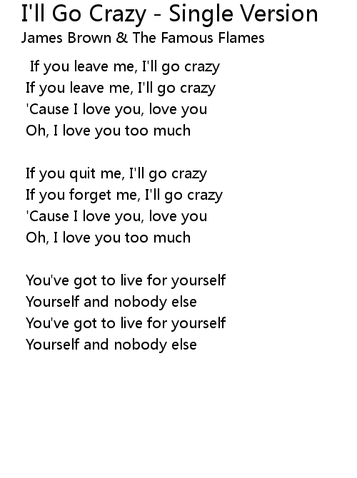 | Song | I'll Go Crazy - Single Version |
