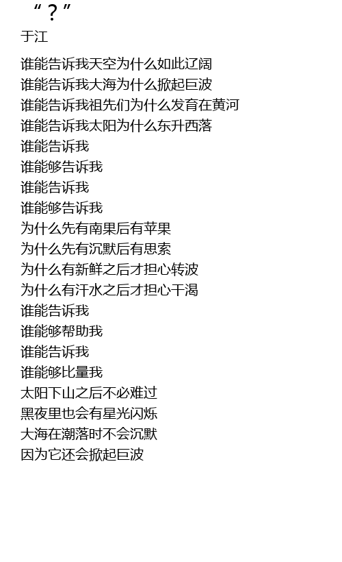 | [00:18.91] | 谁能告诉我大海为什么掀起巨波 |