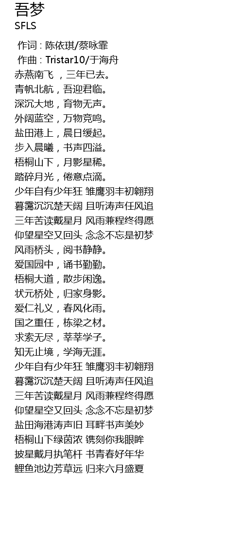 | [02:18.425] | 梧桐山下绿茵浓 镌刻你我眼眸 |