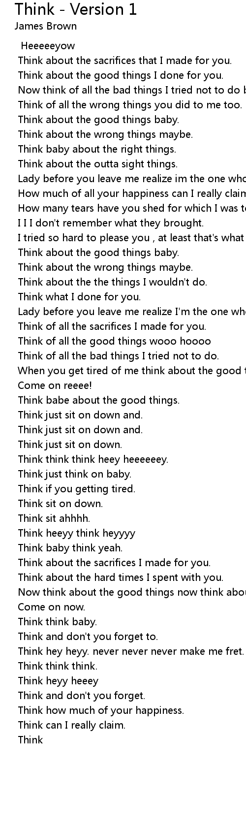 Think - Version 1 Lyrics