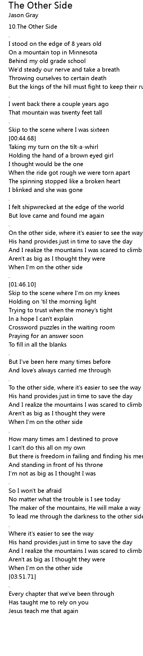 | [03:48.83] | When I' m on the other side |