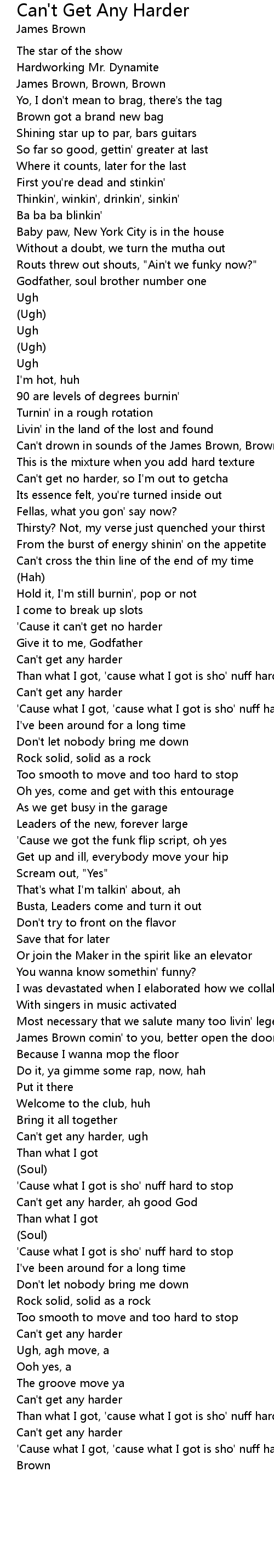 Can't get any harder, ah good God |