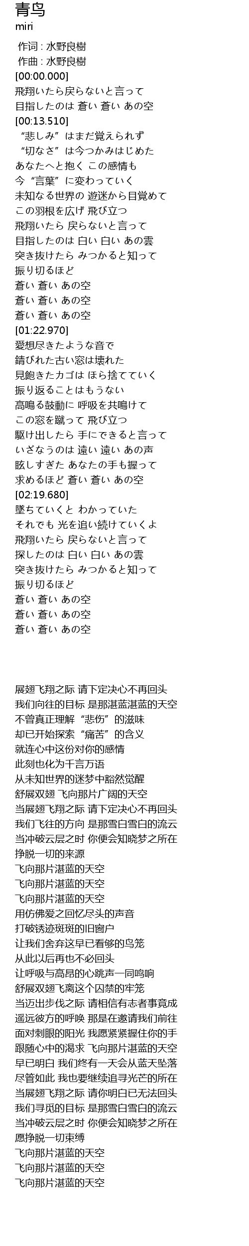 | [00:00.040] | 飛翔いたら戻らないと言って |
