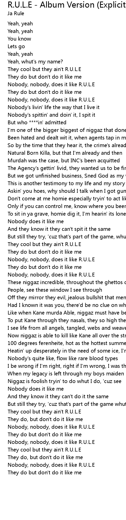 | Nobody, nobody, does it like R.U.L.E | |