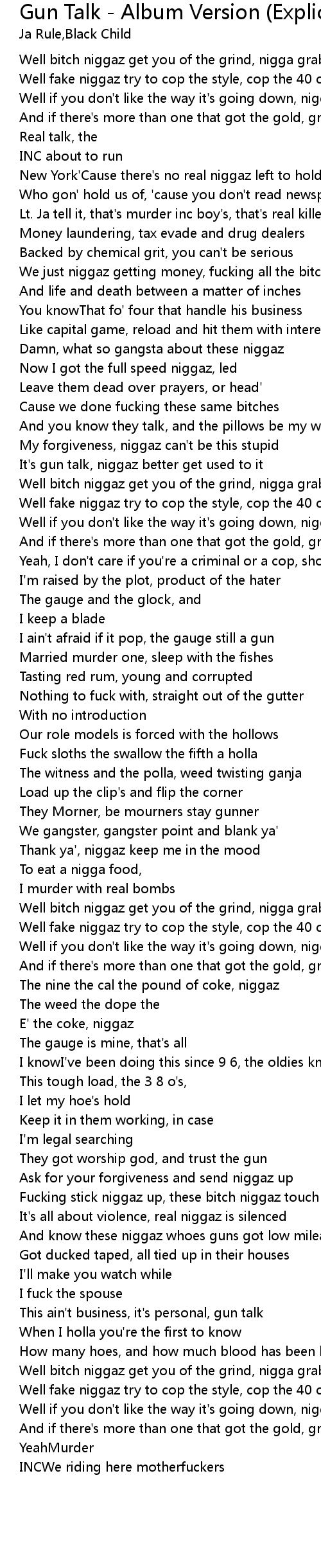 | It's gun talk, niggaz better get used to it | |