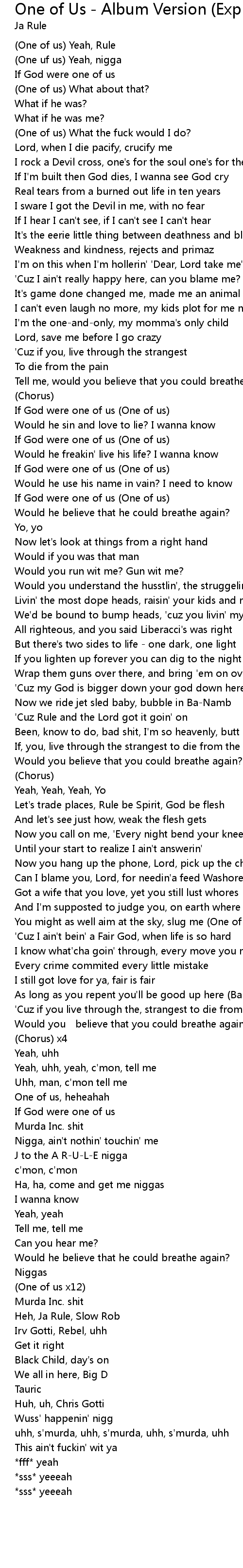 | I' m on this when I' m hollerin' ' Dear, Lord take me' One of us | |