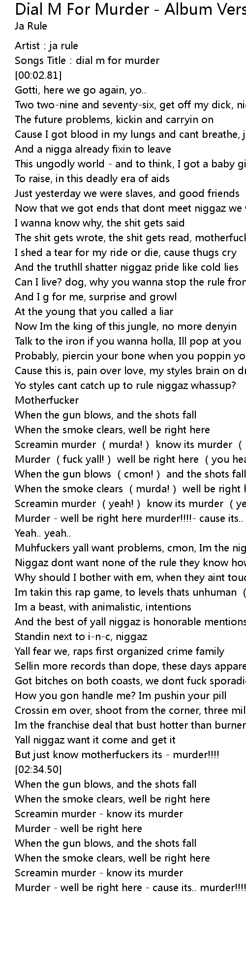 | [01:22.58] | Screamin murder (murda!) know its murder (murda!) |