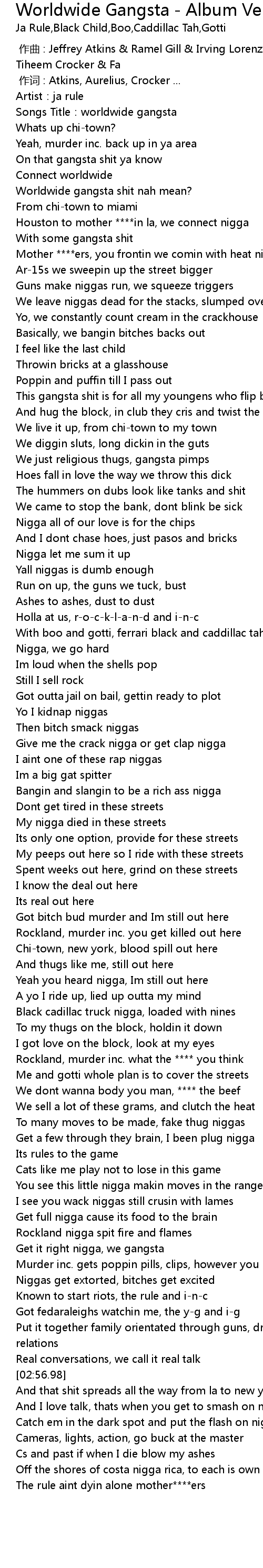 | [00:00.64] | Songs Title:worldwide gangsta |