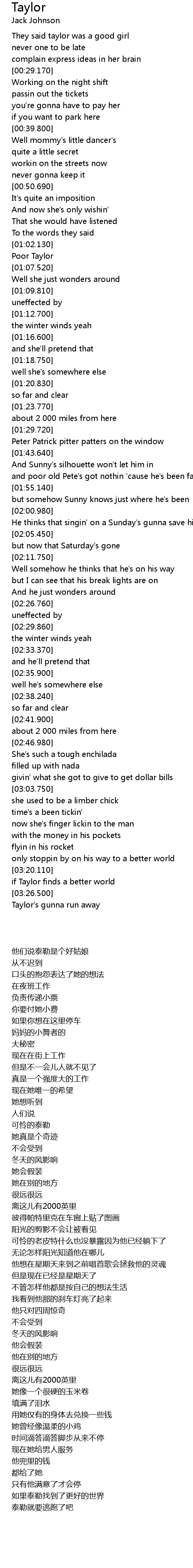 | [00:22.600] | They said taylor was a good girl |