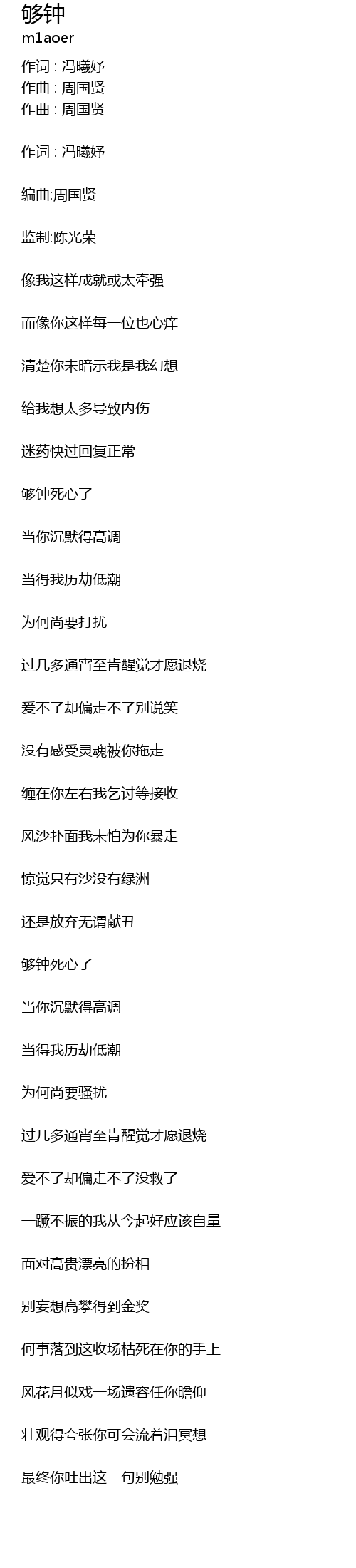 | 够钟死心了 | |