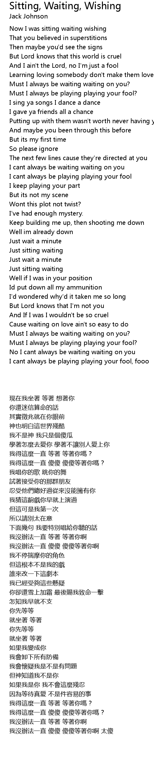 Must I always be waiting waiting on you? |