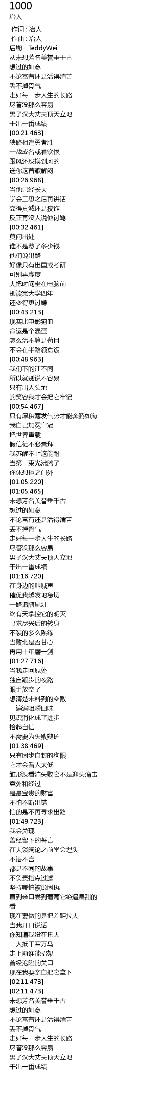 | [01:13.967] | 男子汉大丈夫顶天立地 |