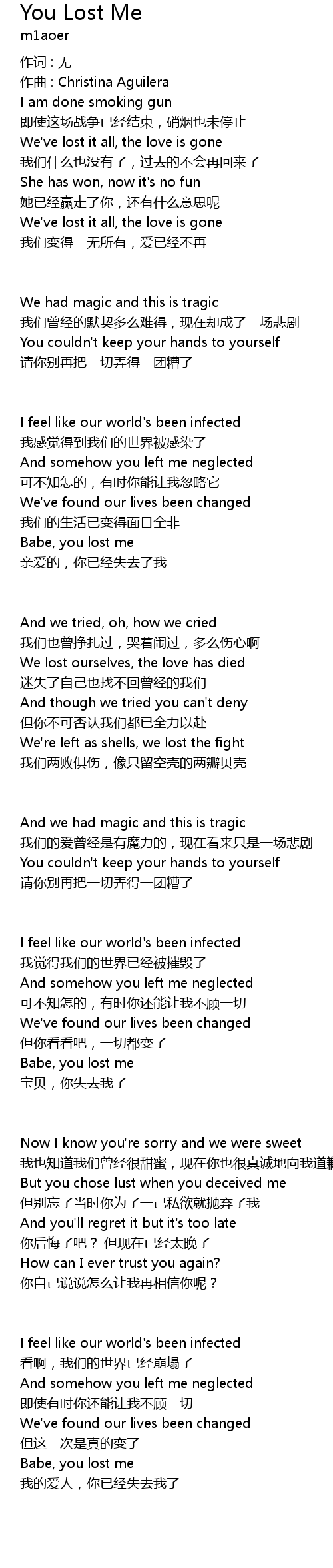 | qīn ài de, nǐ yǐ jīng shī qù le wǒ | |