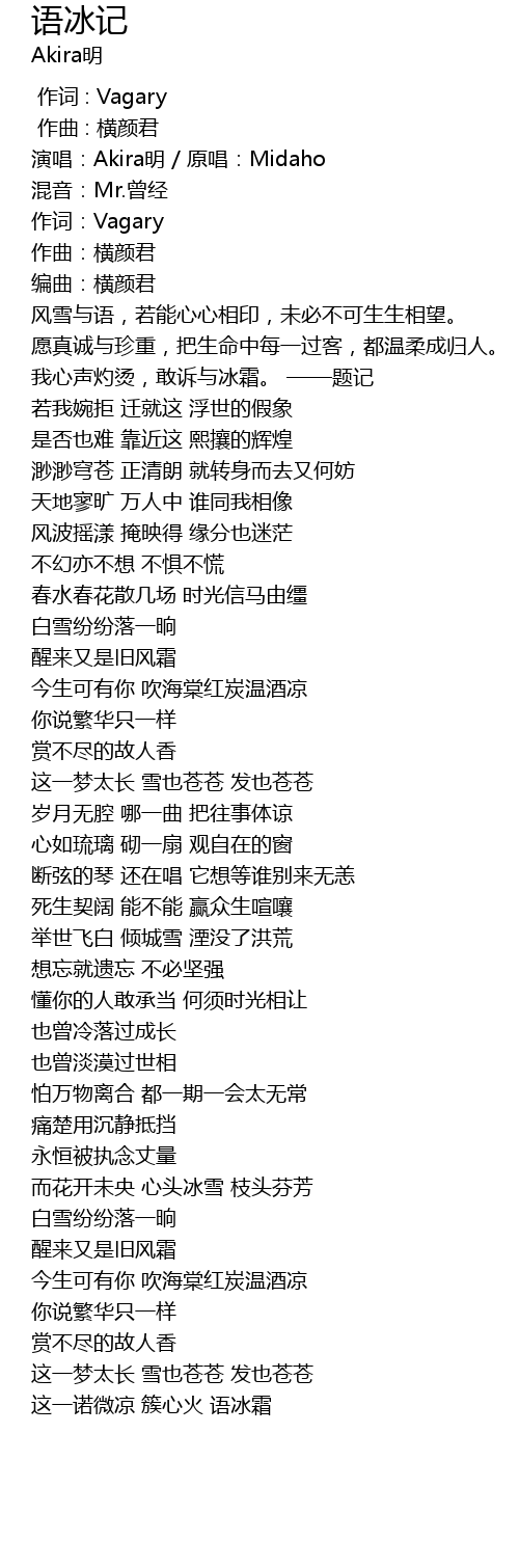 | [00:22.831] | 我心声灼烫,敢诉与冰霜。 ——题记 |