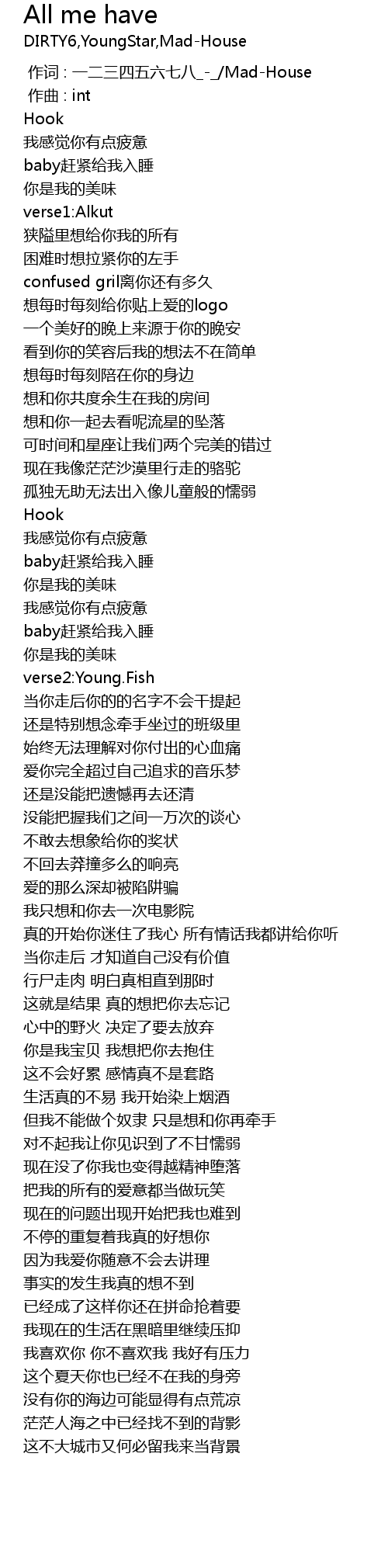 | [00:00.000] | 作词 : 一二三四五六七八_-_/Mad-House |