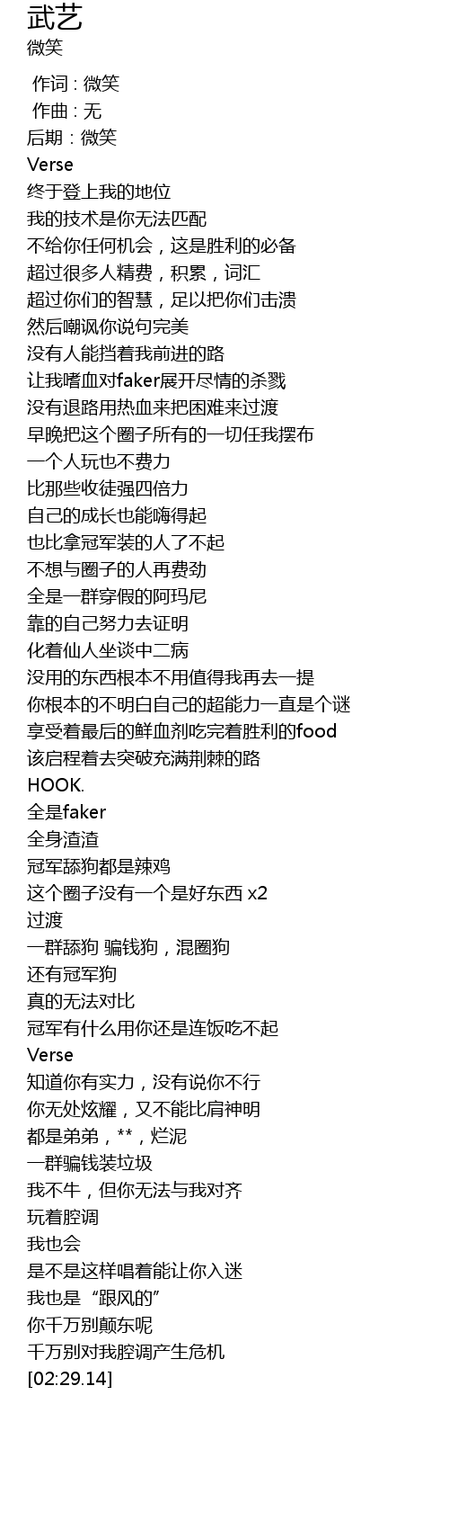 | [00:35.07] | 让我嗜血对faker展开尽情的杀戮 |