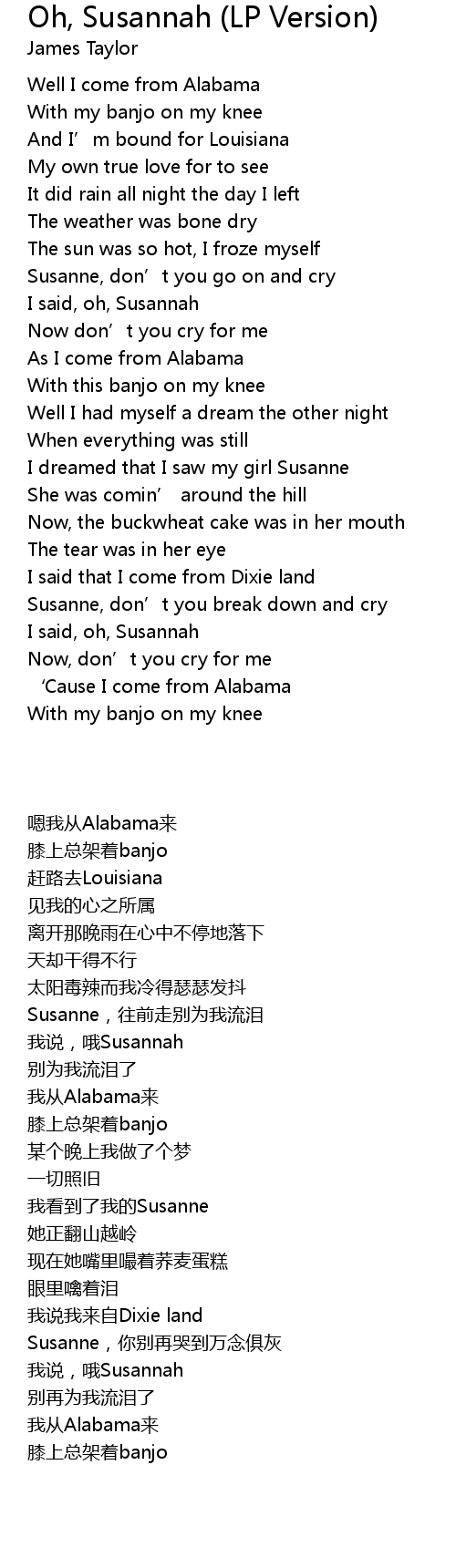 | [00:38.789] | Susanne, don' t you go on and cry |