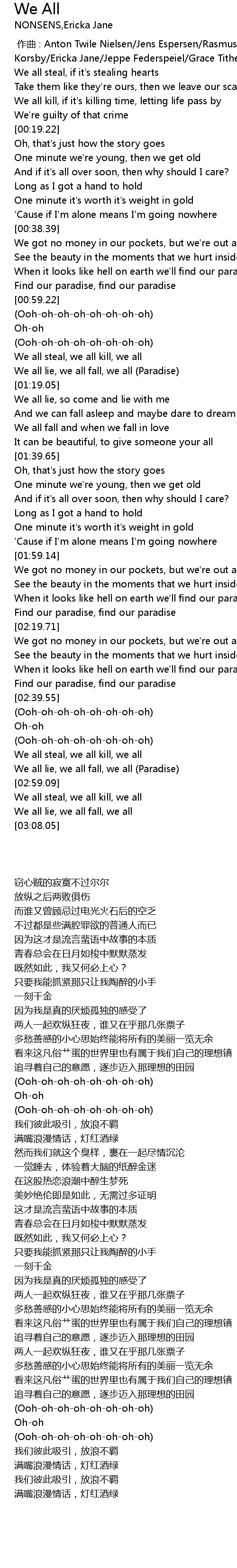 | [02:54.21] | We all lie, we all fall, we all Paradise |