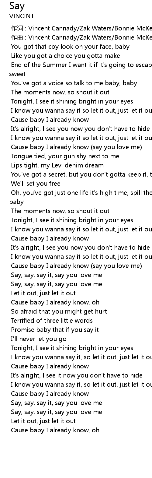 | [01:14.482] | Cause baby I already know say you love me |