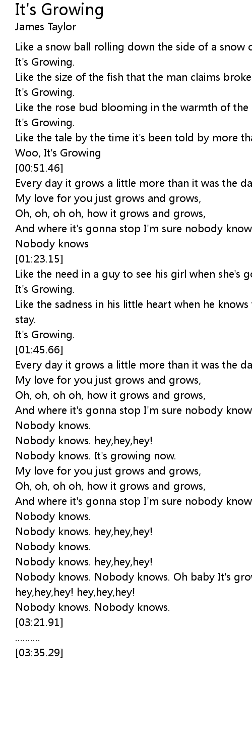 Nobody knows. Nobody knows. Oh baby It's growing now. |