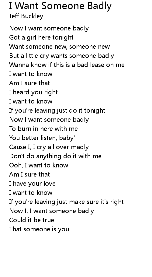 Now I, I want someone badly |