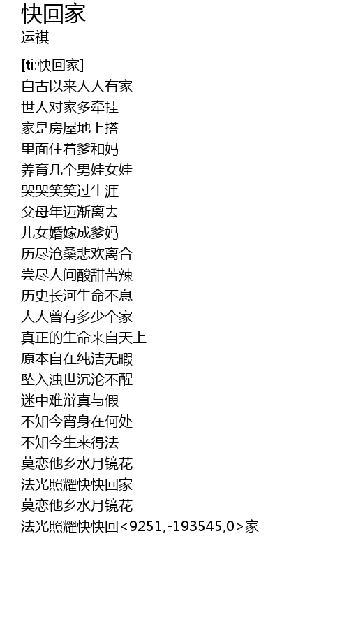 | [03:11.00] | 法光照耀快快回<9251,-193545,0>家 |