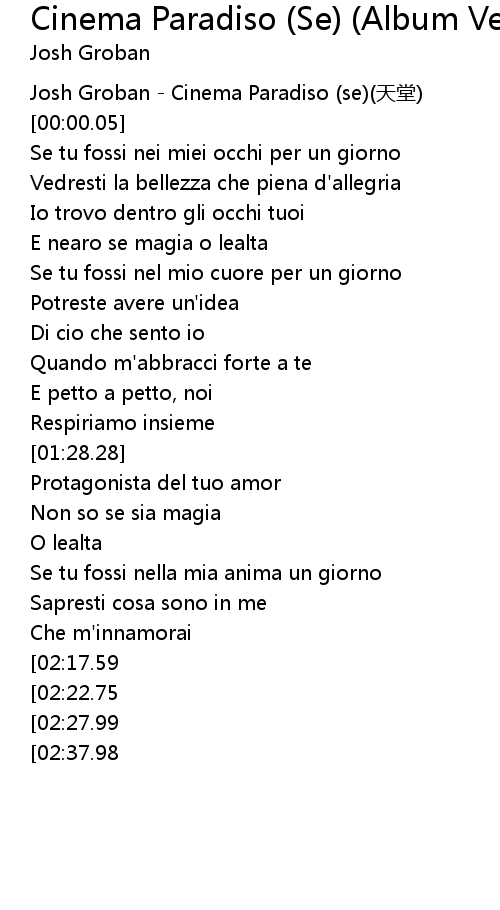 | [00:00.00] | Josh Groban Cinema Paradiso se tiān táng |