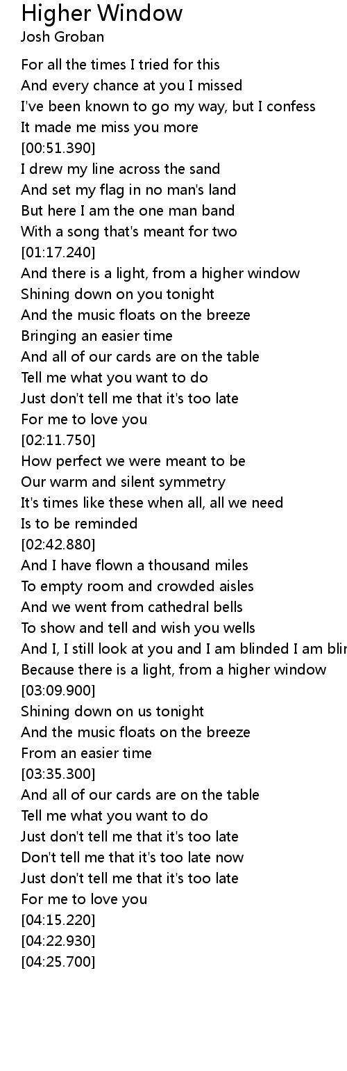 | Song | Higher Window |
