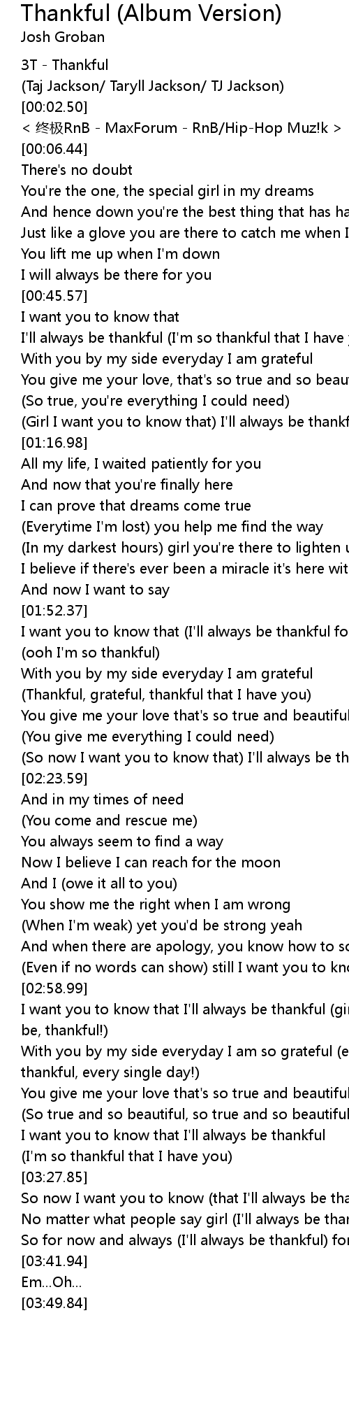 | [02:59.41] | I want you to know that I'll always be thankful (girl I will always be, thankful!) |