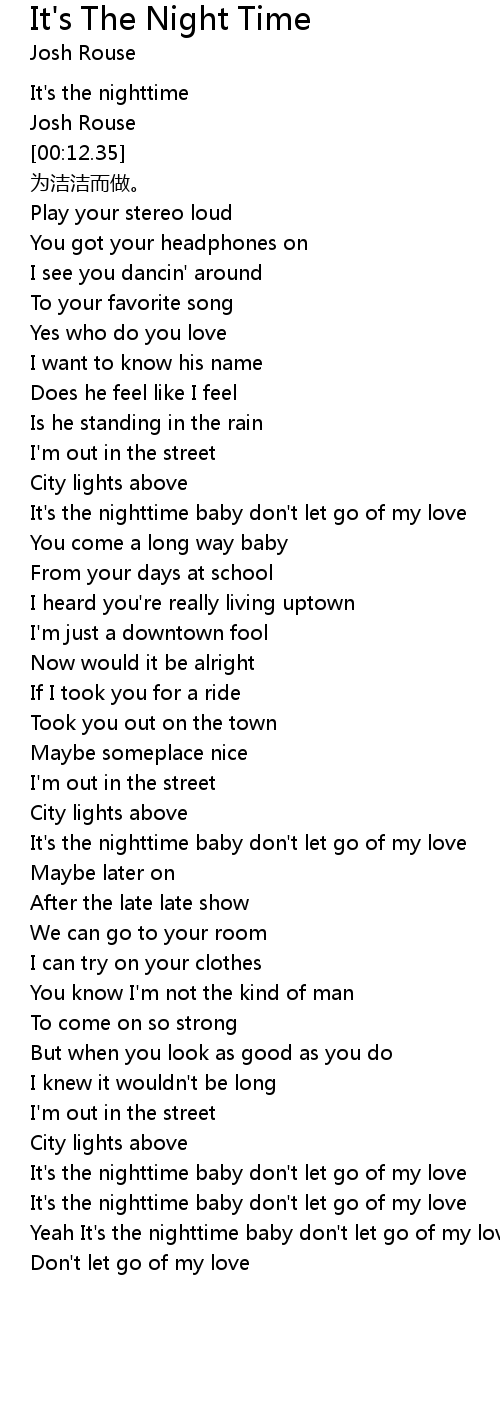 | [00:54.97] | It's the nighttime baby don't let go of my love |