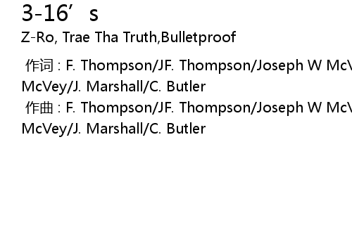 | [00:00.000] | zuò cí : F. Thompson JF. Thompson Joseph W McVey J. Hawkinsoseph W McVey J. Marshall C. Butler |