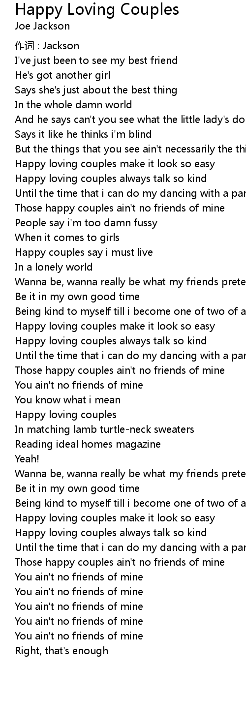 | Those happy couples ain' t no friends of mine | |