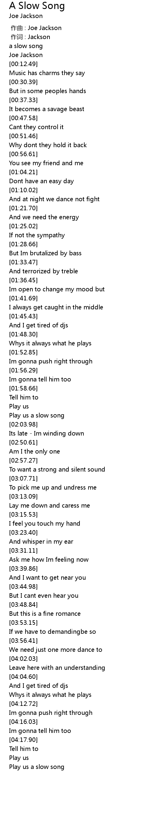 | [00:00.00] | zuò qǔ : Joe Jackson |