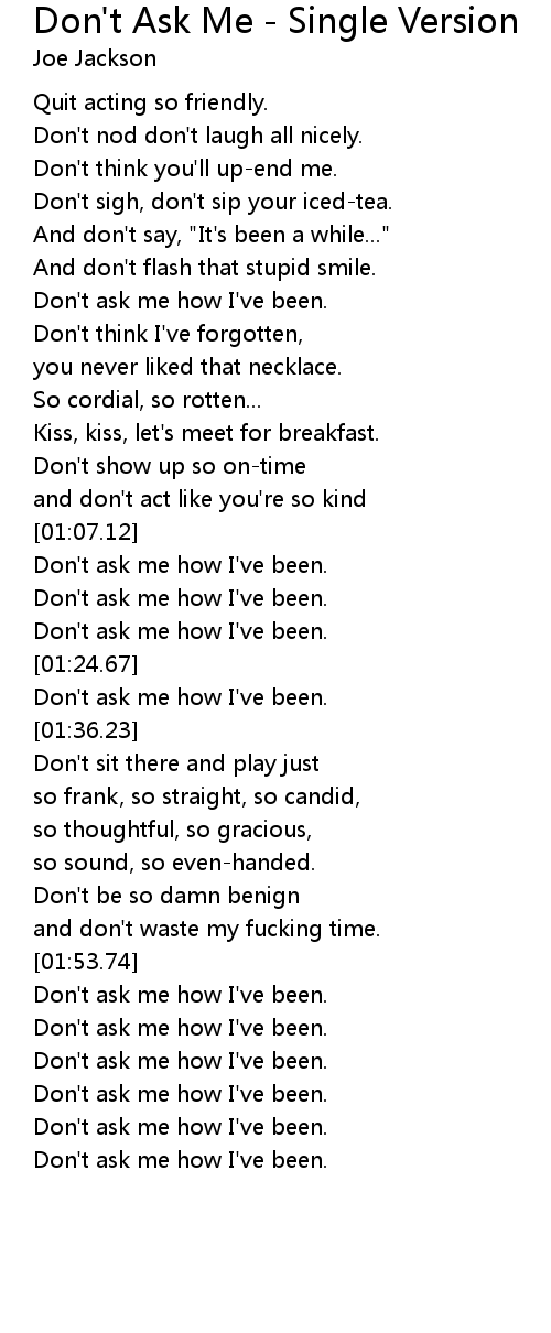 Don't ask me how I've been. |