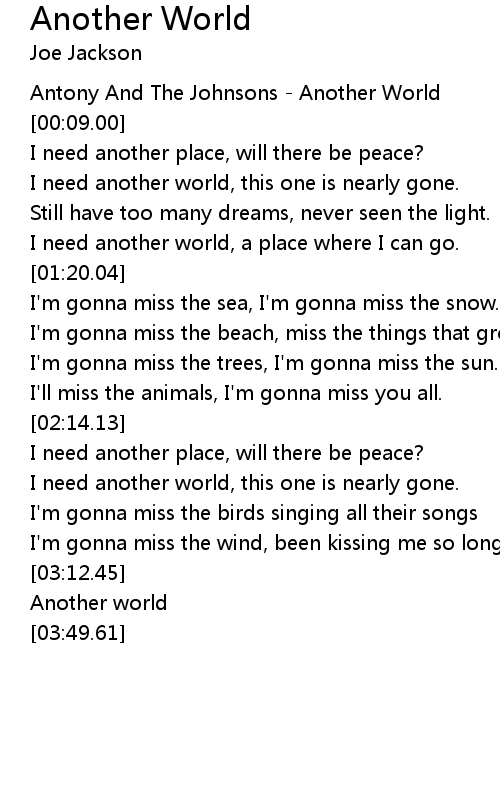 I need another world, a place where I can go. |