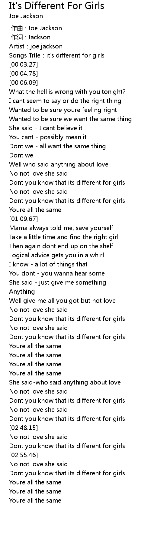 | [00:00.00] | zuò qǔ : Joe Jackson |