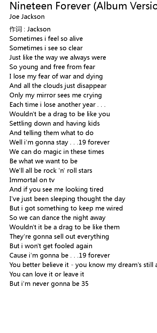 | Cause i' m gonna be . . . 19 forever | |