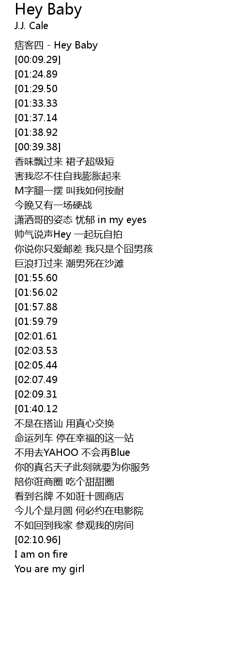 | [02:49.34][02:03.53][01:02.61] | Hey Baby 你的声音 太好听 |