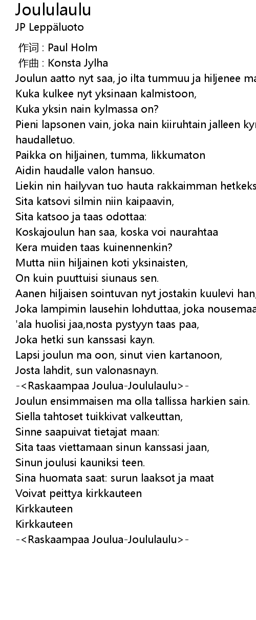 | [05:17.00] | Raskaampaa JouluaJoululaulu |