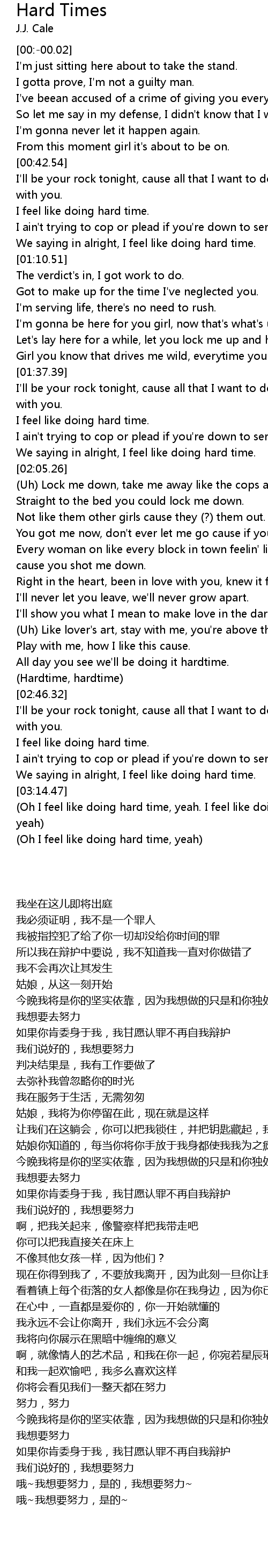 | [00:53.71] | I feel like doing hard time. |