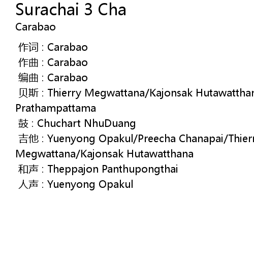 | [00:00.000] | 贝斯 : Thierry Megwattana/Kajonsak Hutawatthana/A-nupong Prathampattama |