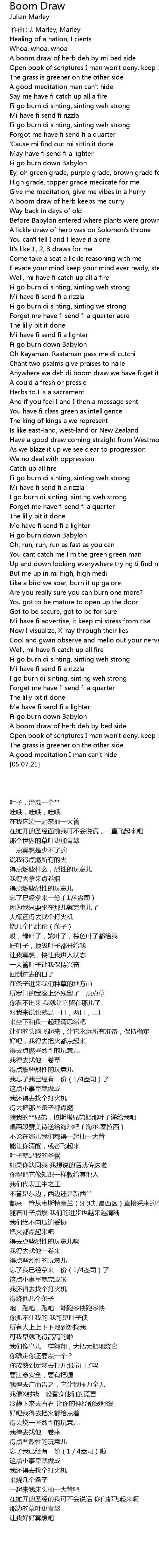 | [00:16.53] | A boom draw of herb deh by mi bed side |