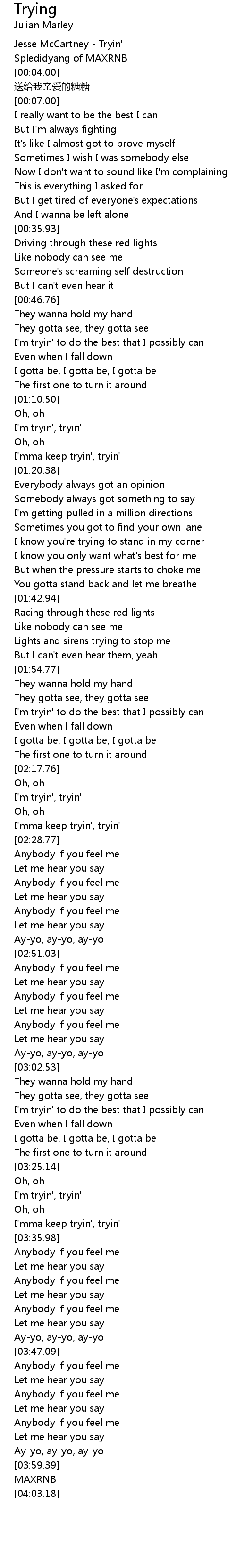 | [01:13.97] | I'm tryin', tryin' |