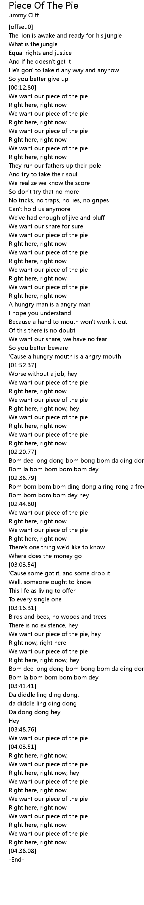 We want our piece of the pie, hey |