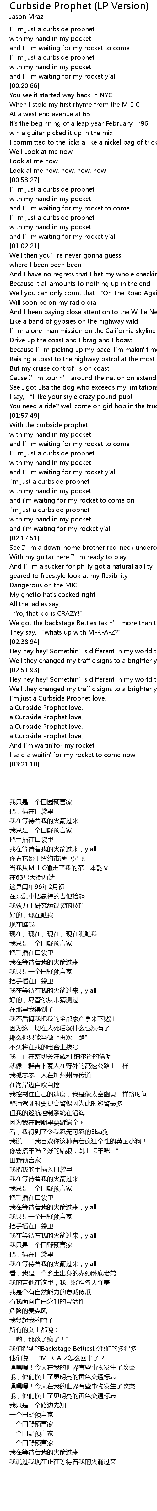 | [00:16.44] | I' m just a curbside prophet |
